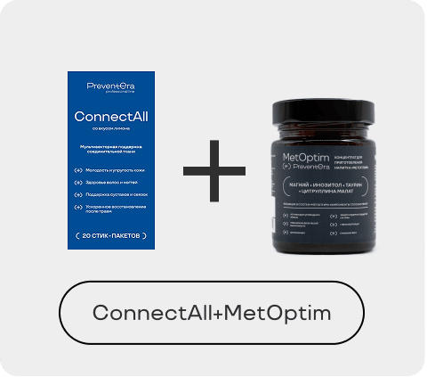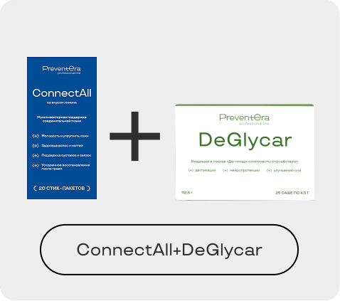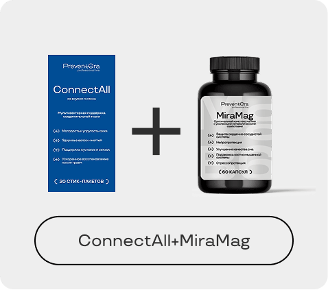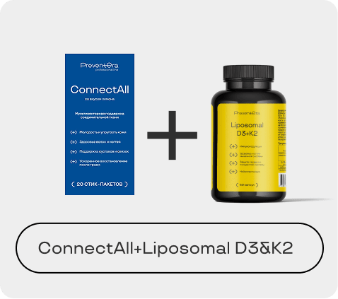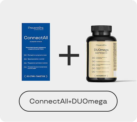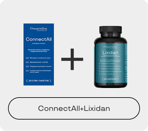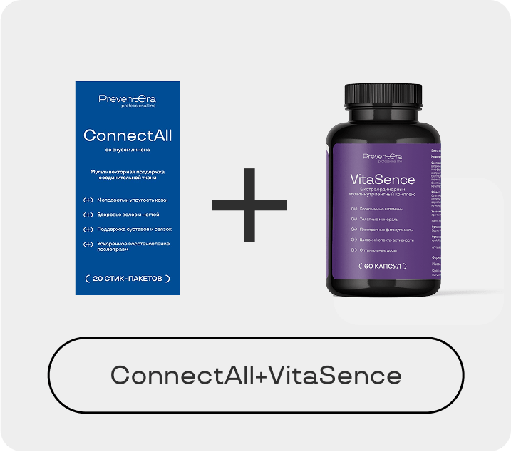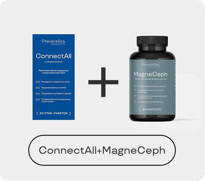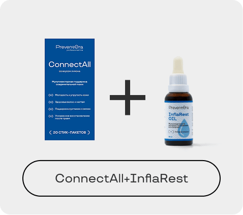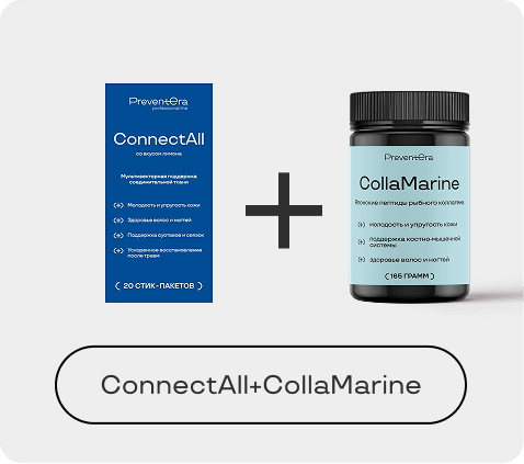 ConnectAll — формула для системной поддержки, регенерации и защиты соединительной ткани. Сочетает субстратное питание, модуляцию воспаления и антиоксидантную защиту, направлена на восстановление матриксных структур и предупреждение их разрушения.