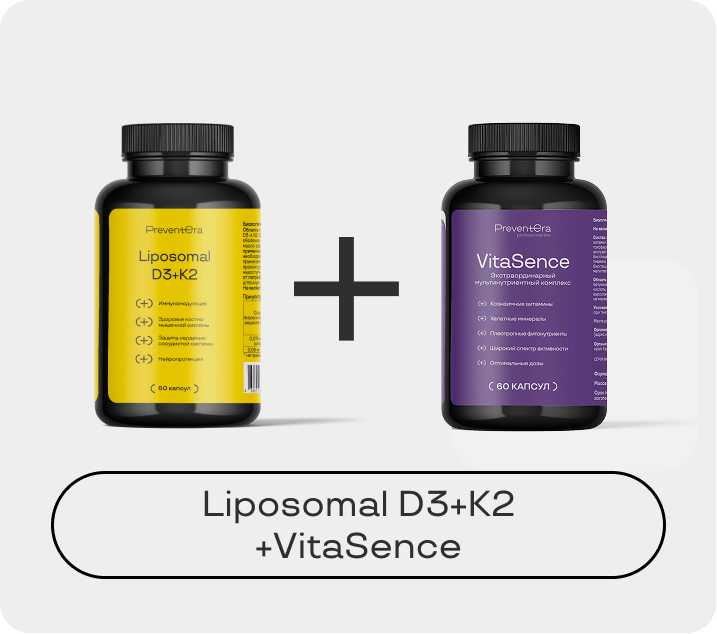 Витамины D3 и K2 для крепких костей, здорового сердца и иммунитета. Липосомальная форма обеспечивает лучшее усвоение.